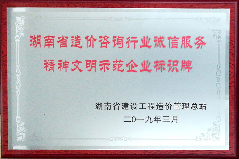 湖南省造价咨询行业诚信服务精神文明示范企业