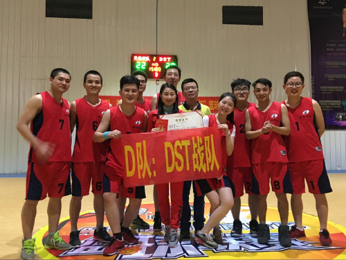 最后是悬念最大的冠亚军之争,在“DST战队”与“无敌战队”中决出胜负。在第一节中“DST战队”远领先于“无敌战队”,但“无敌战队”也不甘落后,不断的调整战术,奋勇拼搏,经过紧张激烈精彩的角逐,在第三节中“DST战队”最后以7分之差的优势战胜了“无敌战队”夺得本次篮球比赛的冠军。