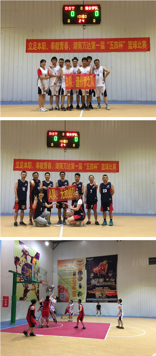 当天天气非常给力,篮球队员们和拉拉队成员个个都激情高昂,现场气氛也异常活跃,第一场比赛是“造价梦之队”和“DST战队”的对决,随着裁判员一声哨响,双方队员在此起彼伏的助威声中,很快进入状态,一幕幕精彩的场景在球场上演,几次精彩的灌篮,构成了一幅幅激动人心的画面。大家虽然在场下是亲密无间的同事、但在球场上却是你争我赶,不放过任何一个得分的机会,在大家期盼的目光和友谊的鼓励呐喊声中,经过30分钟的艰苦鏖战,最后以1分之差“DST战队”惊险获胜。